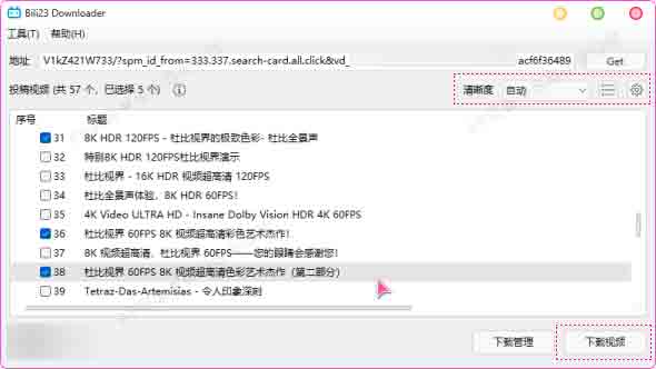 4. 字幕、弹幕与封面下载:支持下载对应的视频字幕(srt, txt,json 类型)和弹幕(xml,protobuf 类型)。