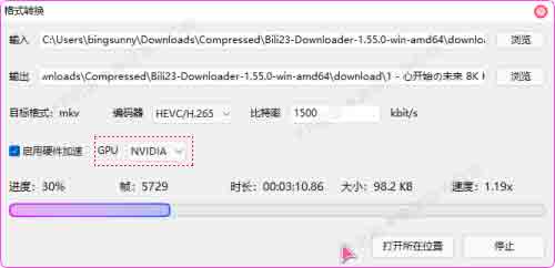 6. 格式转换:若默认下载 MP4 格式不满意,可随时切换编码及视频格式重新输出。另支持硬件显卡 GPU 加速处理。