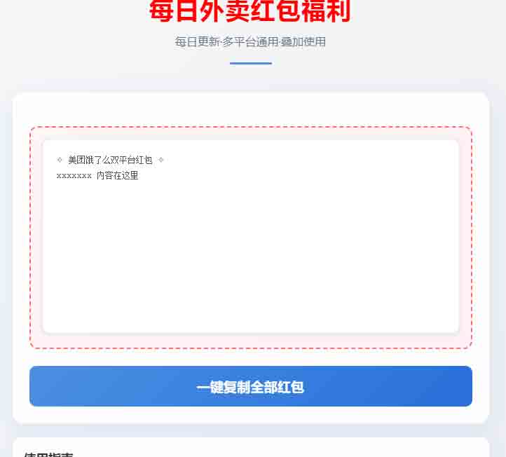 适合推广使用,看见做类似的就自己写了一个,很 简约 HTML,小白也能修改 外卖券优惠 ...