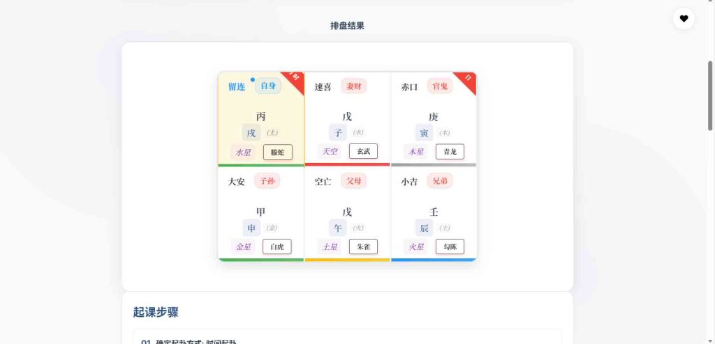 纯前端小六壬排盘工具(HTML+JS+CSS 开源)