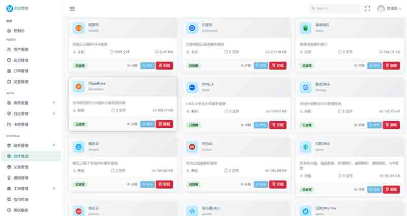2、多平台接入:阿里、腾讯、Cloudflare、华为、百度、火山、京东、宝塔、派小星 DNS、幻影 DNS、彩虹 DNS 等,由插件驱动。